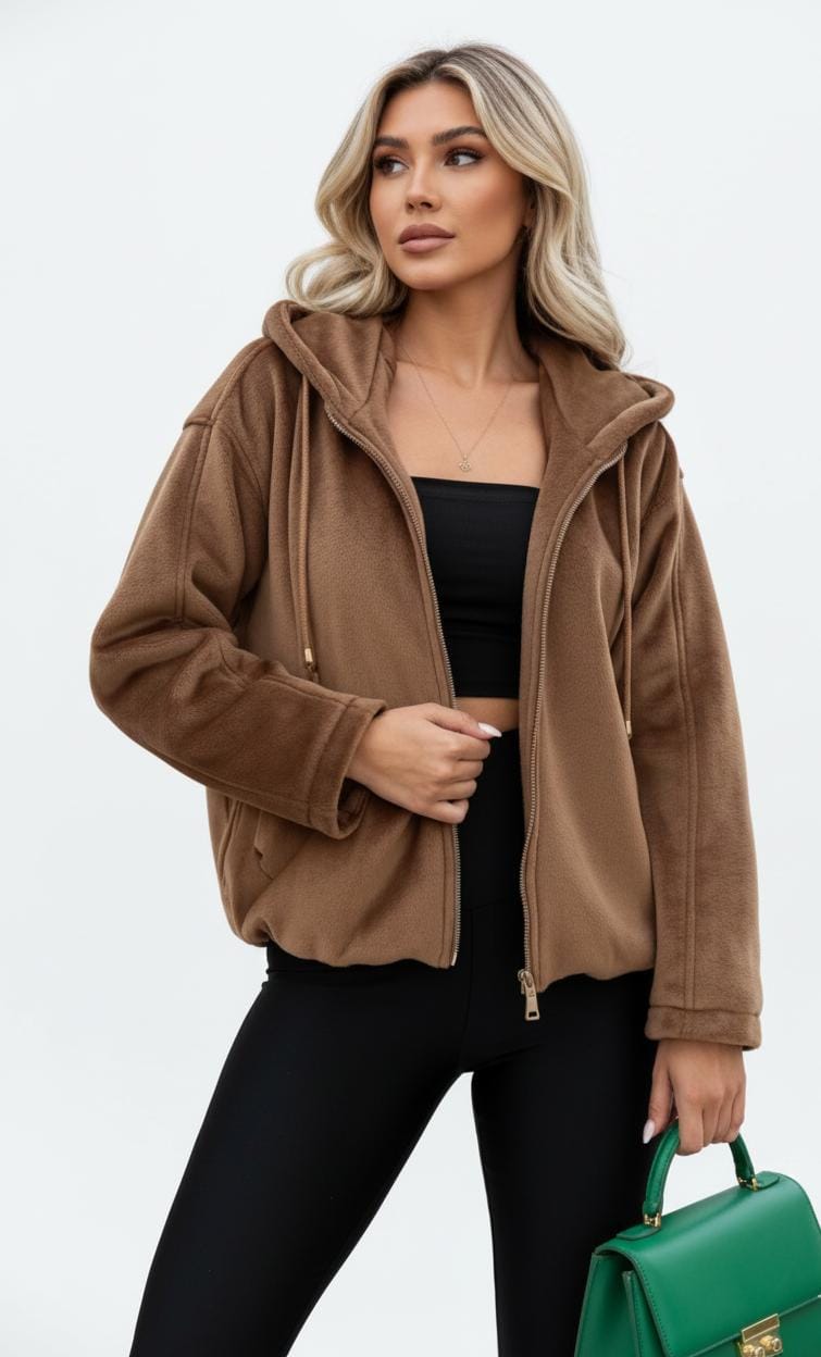جاكيت كاجوال مصنوع من قماش الشمواه مزود بسحاب؛ خامة عالية الجودة.