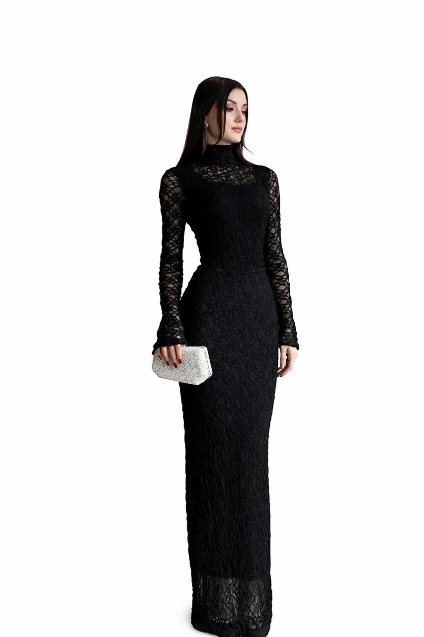 Radiate timeless elegance in this stunning full-length lace dress. Designed with a sophisticated high neckline and intricate lace embroidery, it’s the ultimate choice for a bridal look or a high-end gala.
