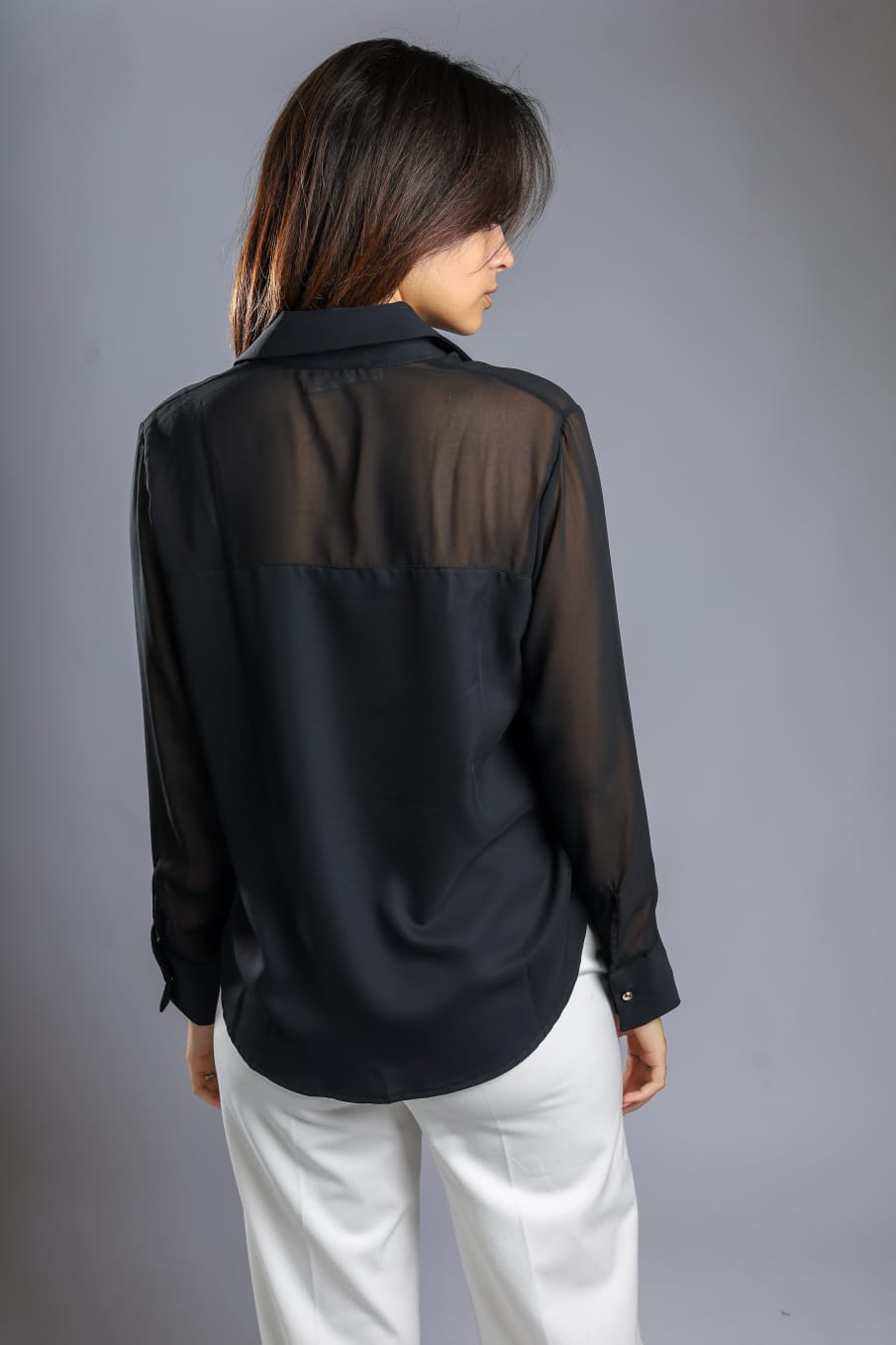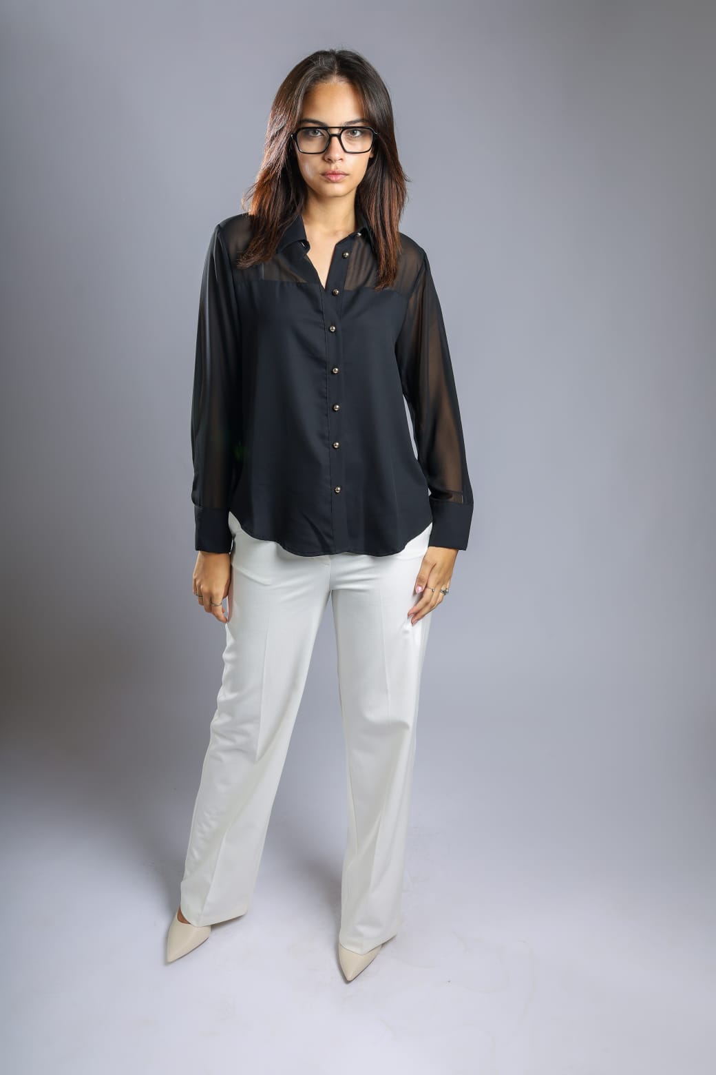 Elegant chiffon blouse with long sleeves and front buttons, available in black, white, and burgundy. Simple and classy design suitable for both classic and casual looks, with a lightweight comfortable fabric perfect for all seasons